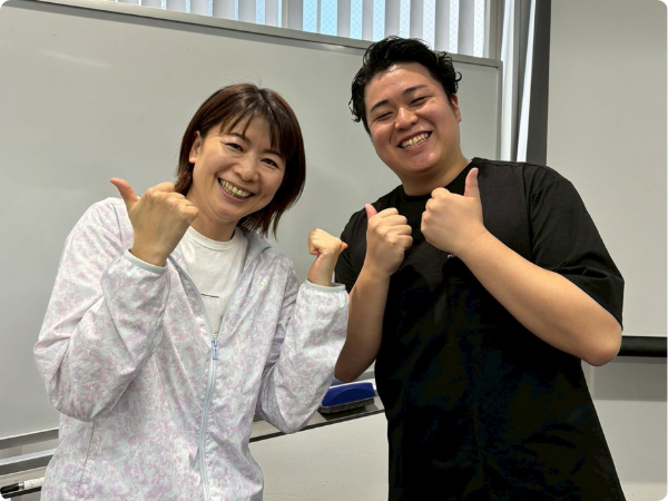 一生懸命に学ぶ姿に刺激を受けて、わたしも大きく成長することができました。先生の治療により、身体が治り、みなさんが笑顔になることをわたしがお約束します!ずっと抱えてこられた悩みを、西山先生にぜひ相談してみてください。
